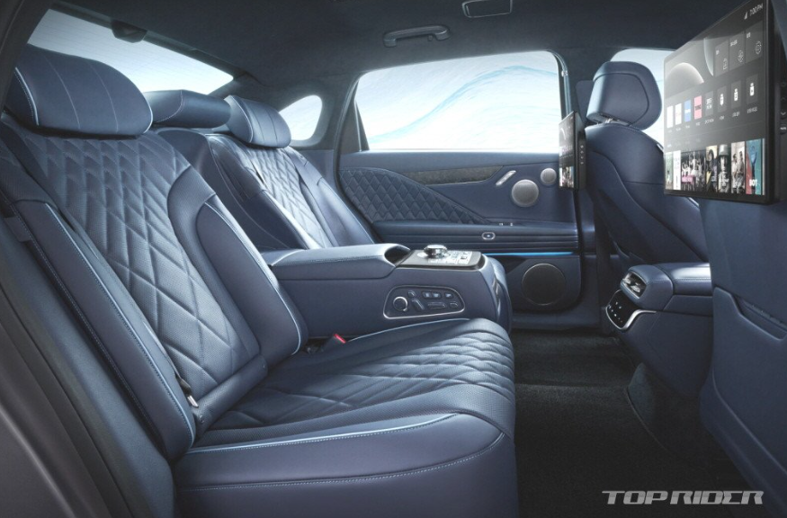 신형 G80 전동화 모델의 길어진 휠베이스는 2열 레그룸 공간 확보에 사용됐습니다. 특히 2열 전동 리클라이닝 독립 시트, 에르모 모션 시트, 버튼을 눌러 열려 있는 문을 편리하게 닫을 수 있는 이지 클로즈 시스템 등 기존 모델 혹은 내연기관과 차별화된 2열 편의사양을 지원한다고 합니다.