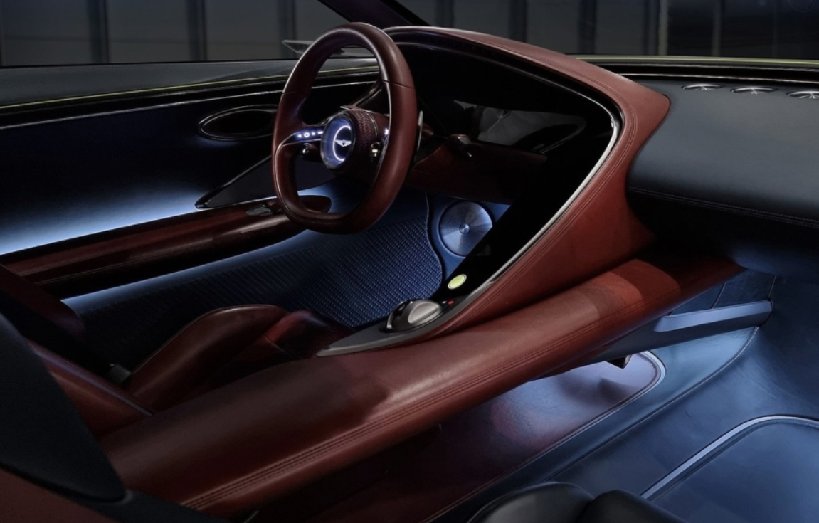 내부 컬러의 경우 운전석은 스코치 브라운 컬러로, 동승석은 오션 웨이브 그린 블루 컬러로 두 공간을 구분해 제네시스 엑스만의 차별화된 감성을 전달 했다고 합니다.