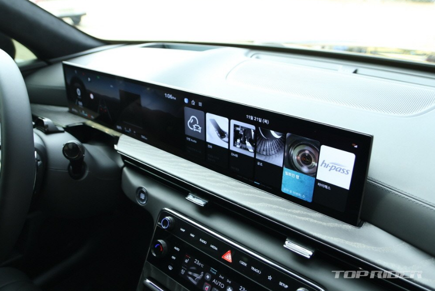 패들 시프트를 활용한 수동 모드 시 고회전 rpd에서 기어 단수 고정은 안됩니다. 외부 소음 차단과 고속 주행 시 A필러를 통해 유입되는 풍절음 차단 등 전반적인 실내 정숙성은 만족스러운데, 22인치 힐 타이어를 타고 올라오는 노면 소음은 80km/h 이상에서 생각보다 큽니다.