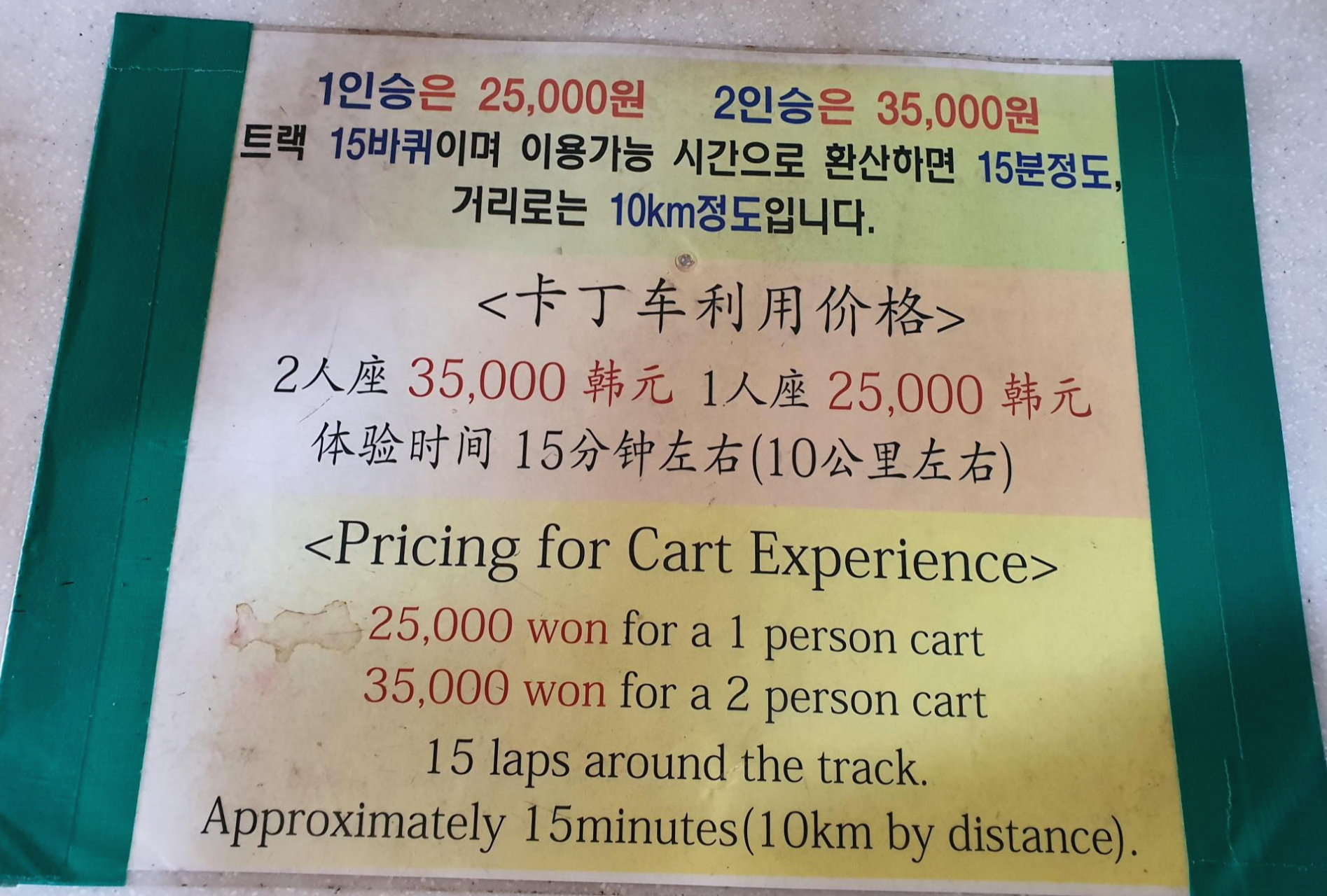 이곳 말고도 여러 카트체험자을 보고 왔는데..