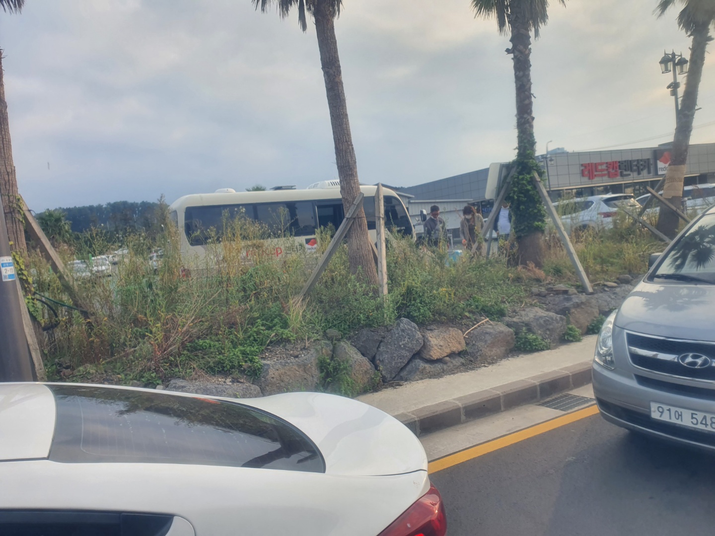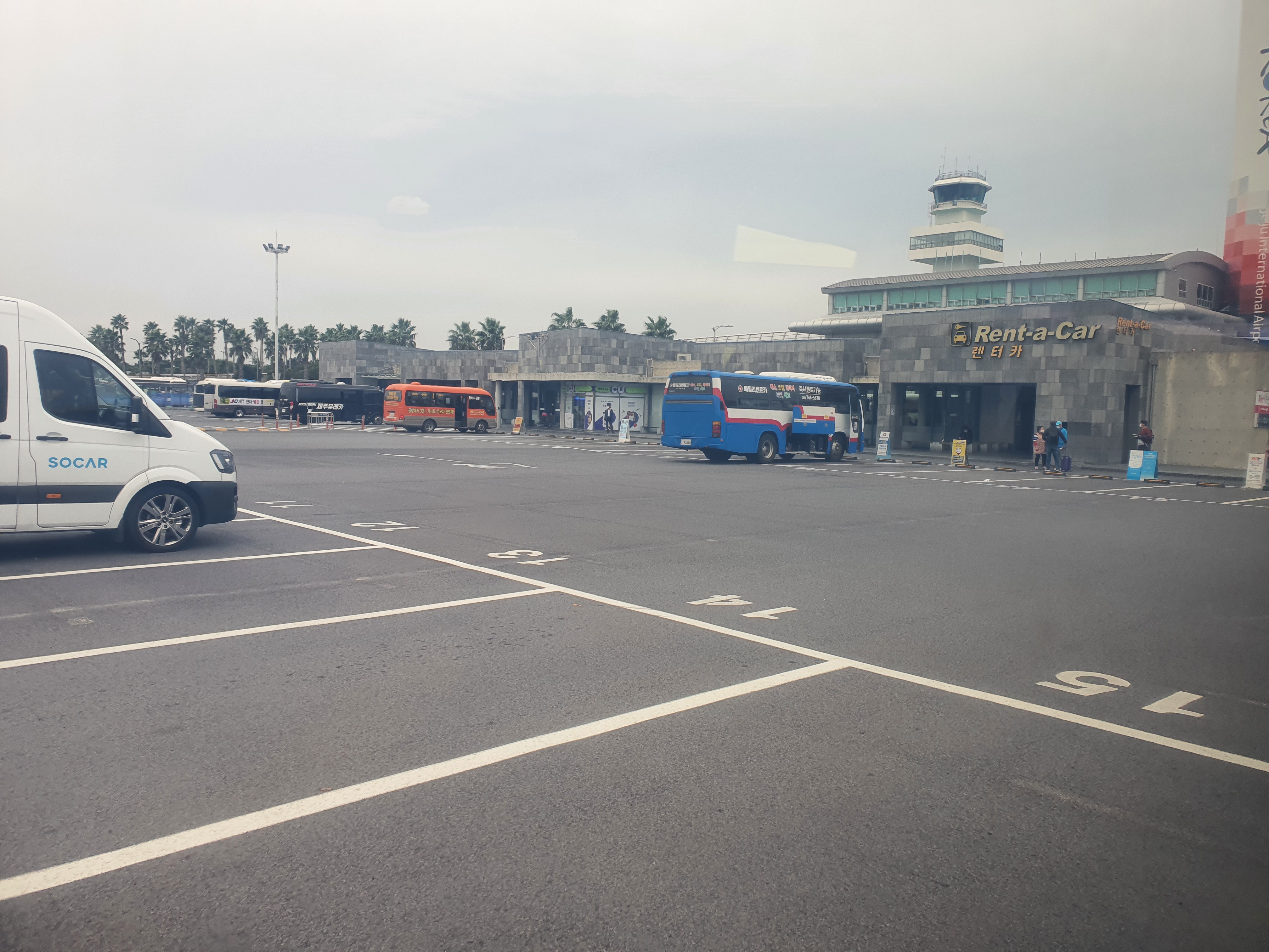 그렇게 비행기를 타고 도착한 제주도 KD렌트카 셔틀버스 주차장..