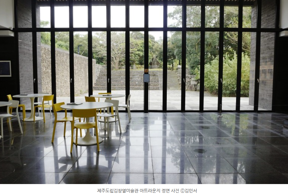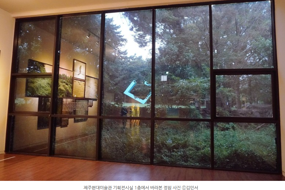 이처럼 전시실 안에서 외부의 제주도 자연을 그대로 투영하게 볼 수 있는 '차경' 또한 하나의 작품처럼 보여 너무 좋았습니다.