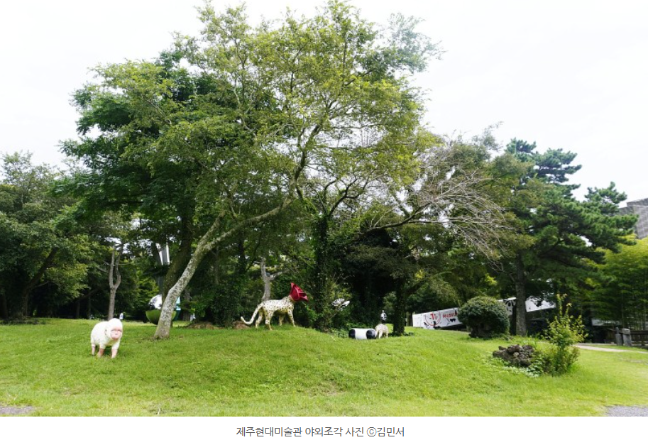 제주현대미술관 주변 산책길에는 숲과 다양한 예술이 조화를 이뤄 관람객들의 시선을 끄는 풍경을 볼 수 있습니다.