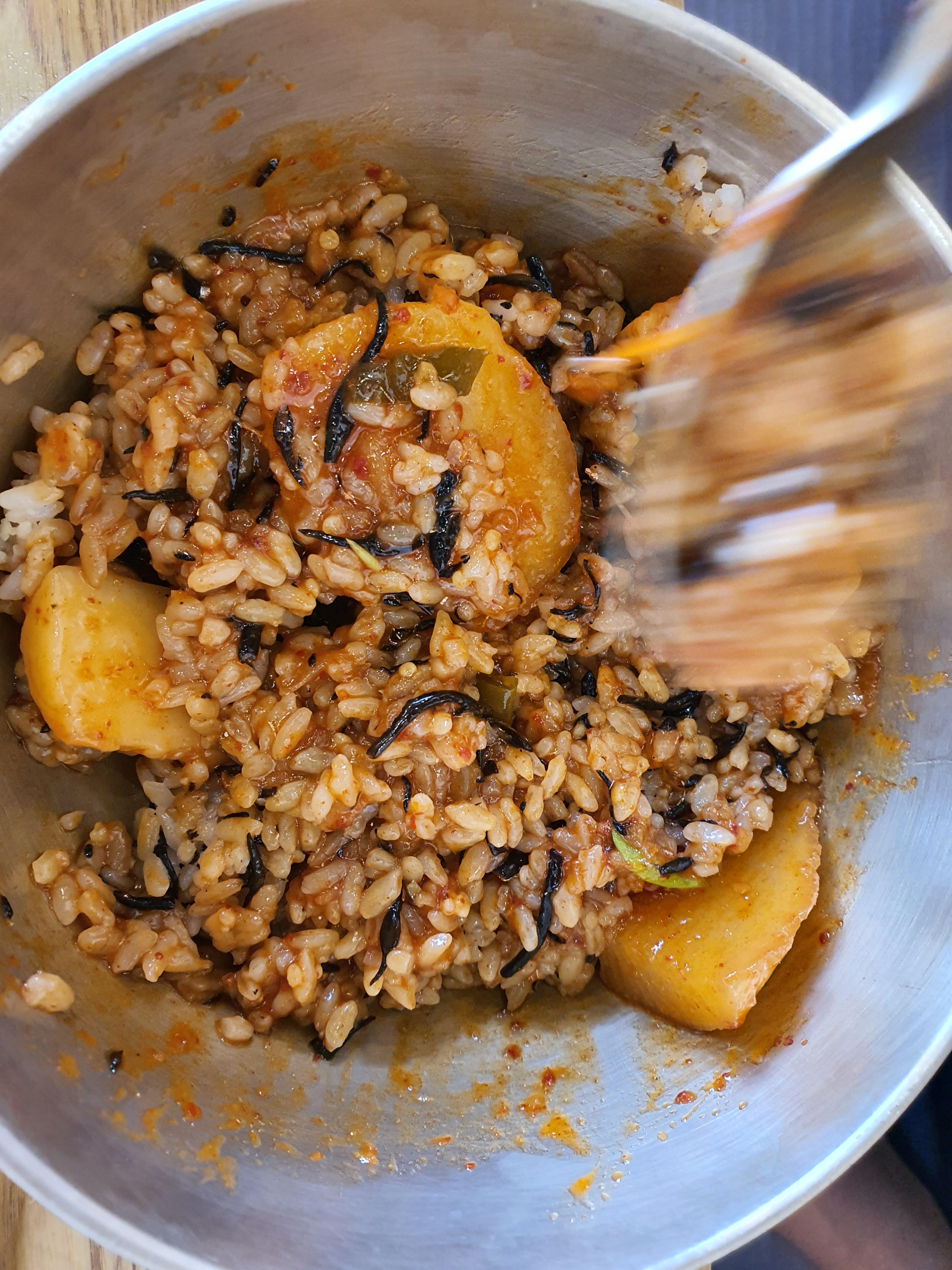 밥을 여기에 몇 번을 비벼서 먹었습니다.