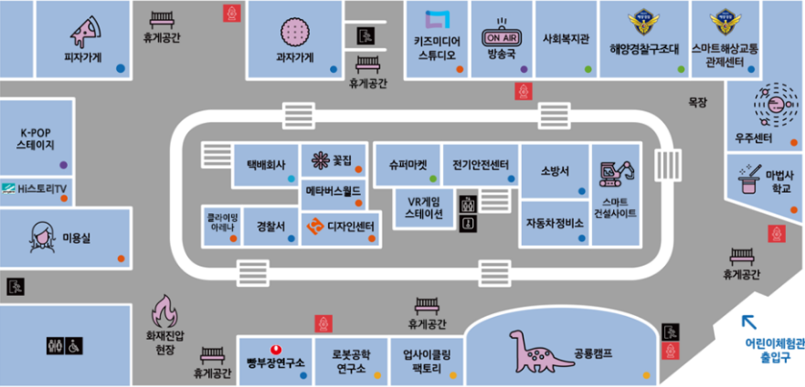 직업현장전문가가 상주해 있어 다양한 자문도 받을 수 있고 체험을 통해 경제 개념도 높일 수 있다고 하는데, 인테리어 회사부터 K-POP 스테이지, 자동차 정비소 등 없는 게 없습니다. 여기에서는 어린이뿐만 아니라 어른까지도 오감이 즐거울 듯합니다.