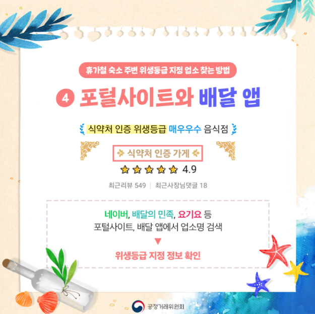 휴가철 숙소 주변 위생등급 지정 업소 찾는 방법