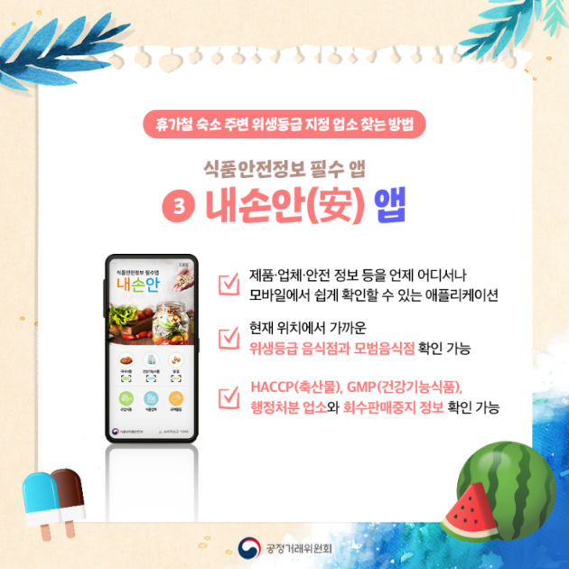 오늘은 여름 휴가철을 맞이해 휴가지 숙박시설 주변의 음식점 위생등급제 지정 업소를 확인할 수 있는 방법들을 소개해 드리겠습니다.