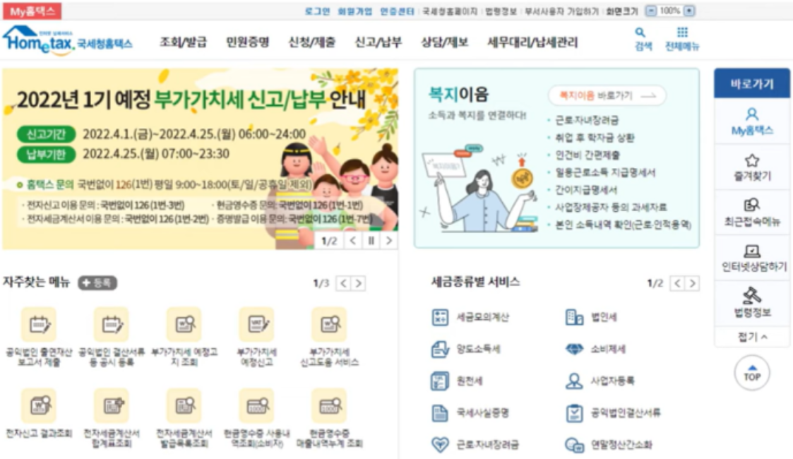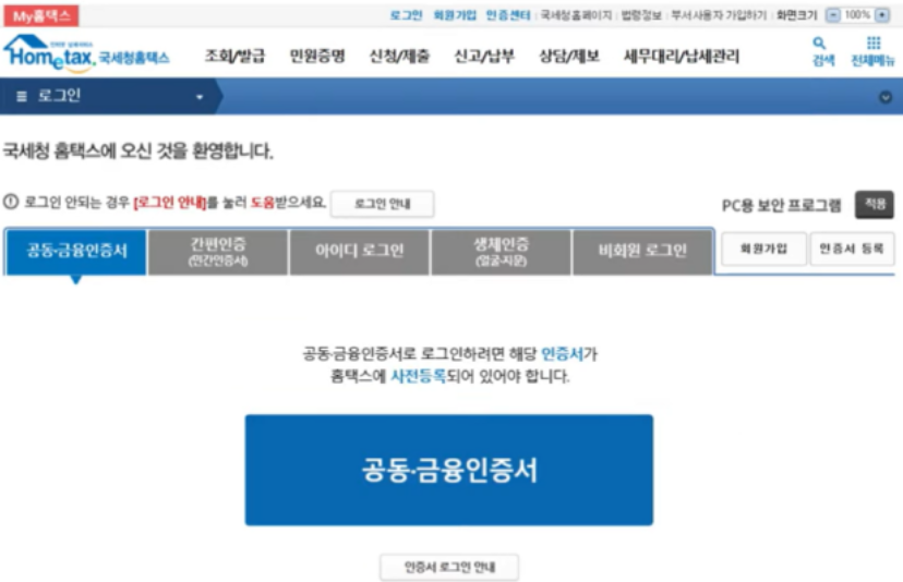 1. 종합소득세 신고하기 위한 로그인 화면가기