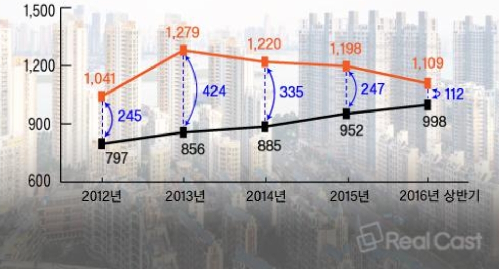 2012년을 기점으로보면 85㎡ 중대형 공급물량은 감소했었습니다.