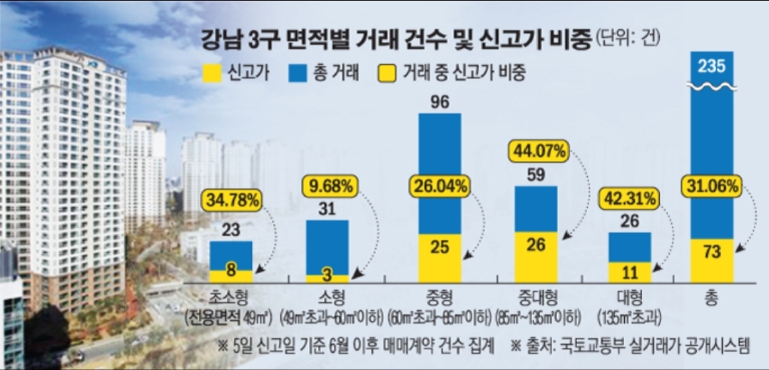 서울 전체 아파트 거래에서 전용 85㎡ 초과 중대형 아파트가 차지하는 비중은 지난해 초(3~4월)만 해도 13~14% 정도였는데, 이후 증가해 지난달 18.1%까지 올랐다고 합니다.