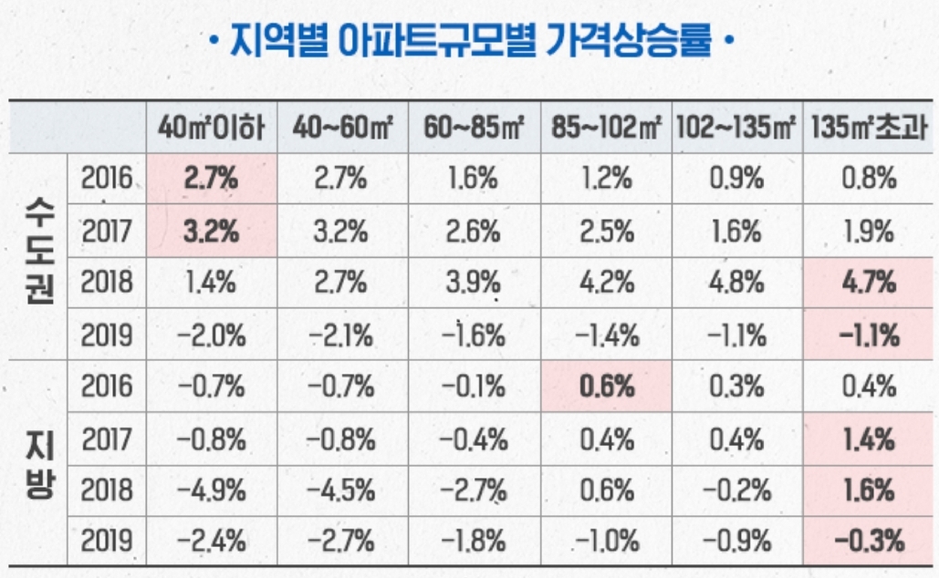 부동산원 주간 아파트값 동향 자료를 보면 전용 135㎡ 대형 아파트가 0.14% 올라, 전주(0.11%)에 이어 전체 면적 중 가장 큰 상승 폭을 보였다고 합니다.