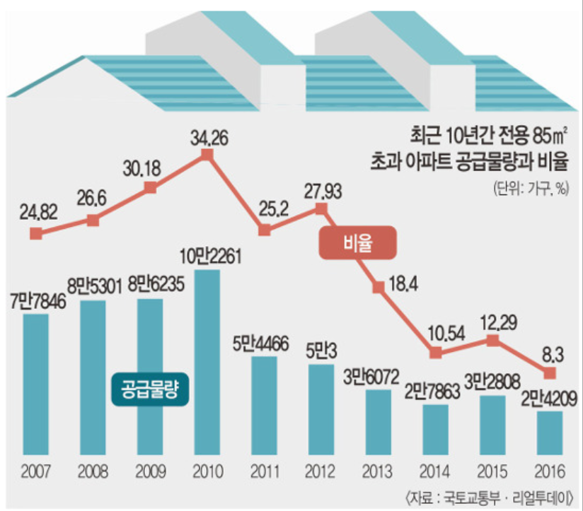 지난 10년간 중대형 공급 부족이였으며 최근 6·17, 7·10 부동산대책 등의 규제로 인해 1~2채로 집중하는 흐름이 된것입니다.