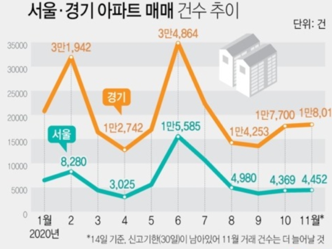 하지만, 코로나로 인해 집콕 생활이 늘면서 바뀐걸까요? 아니면 다주택 규제로 똘똘한 한 채 수요가 늘면서 거래가 증가해서 일까요?