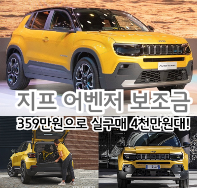 그럼 여기까지 지프 어벤저 보조금 359만 원으로 실구매 4천만 원대 확정되어 소식 전해드렸습니다.