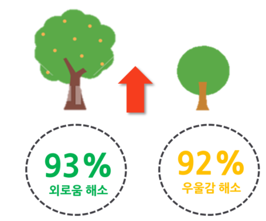반려식물을 키우는 1인 가구를 대상으로 '반려 식물과 함께 하는 삶에 대한 만족도'를 조사한 결과, 무려 92%가 반려 식물을 기르는 일이 우울감 해소에도 도움이 되었다는 의견이 나왔다고 합니다. 또한, 반려식물 기르기 전과 후의 감정과 에너지 지수가 상승하였다는 점도 주목할만 하다고 합니다.