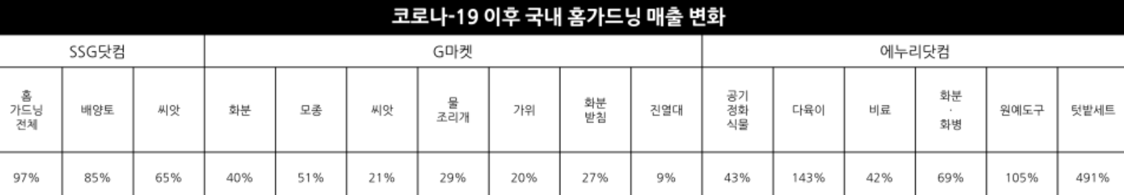 코로나-19 이후 국내 홈가드닝 매출은 급격하게 증가중이며, 향후 2023년은 지금 매출 규모의 8배를 전망하고 있다고 합니다.