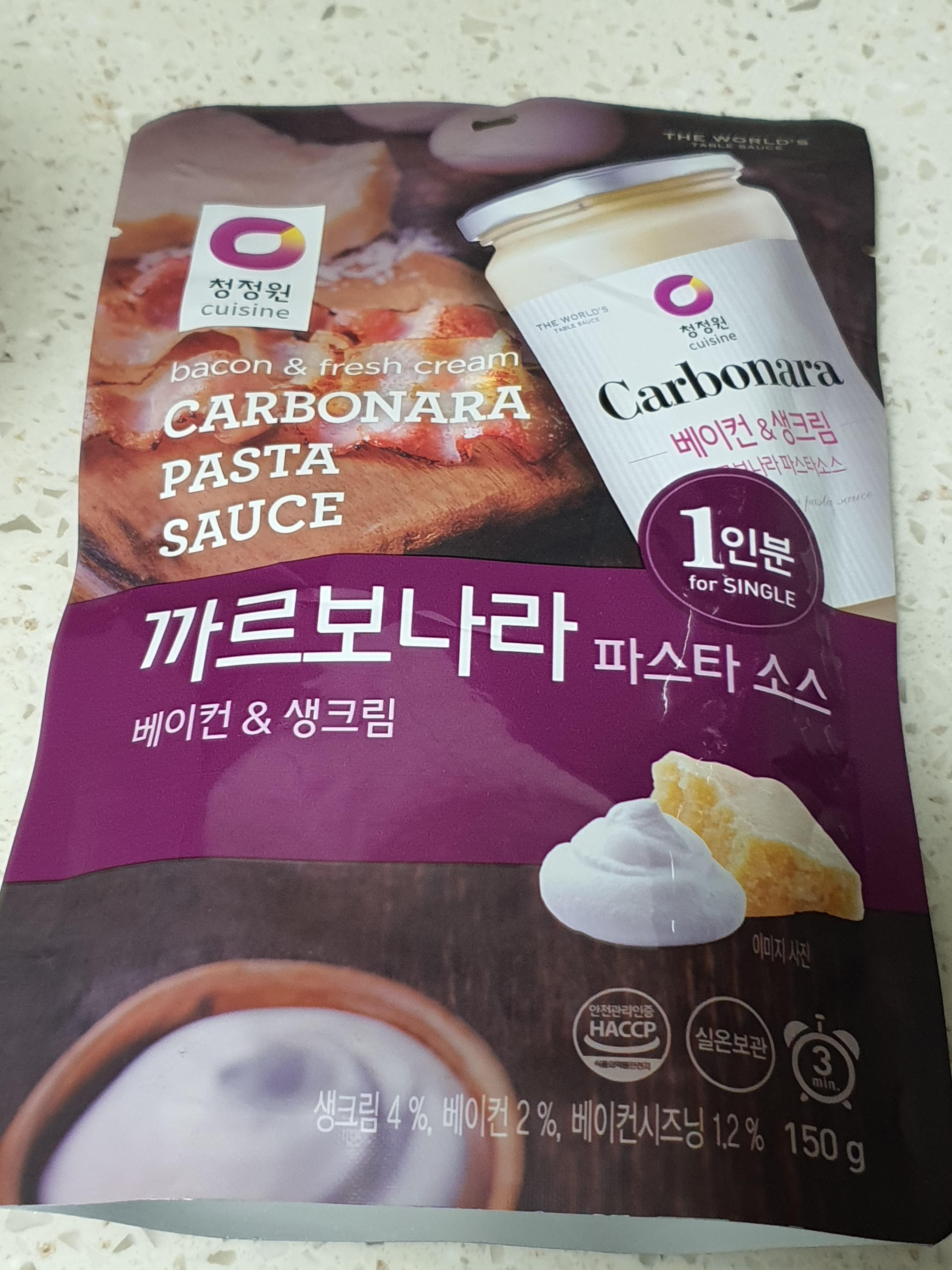 이젠 까르보나라 파스타 소스 하나 혹은 두개를 넣어주구 잘 저어줍니다.