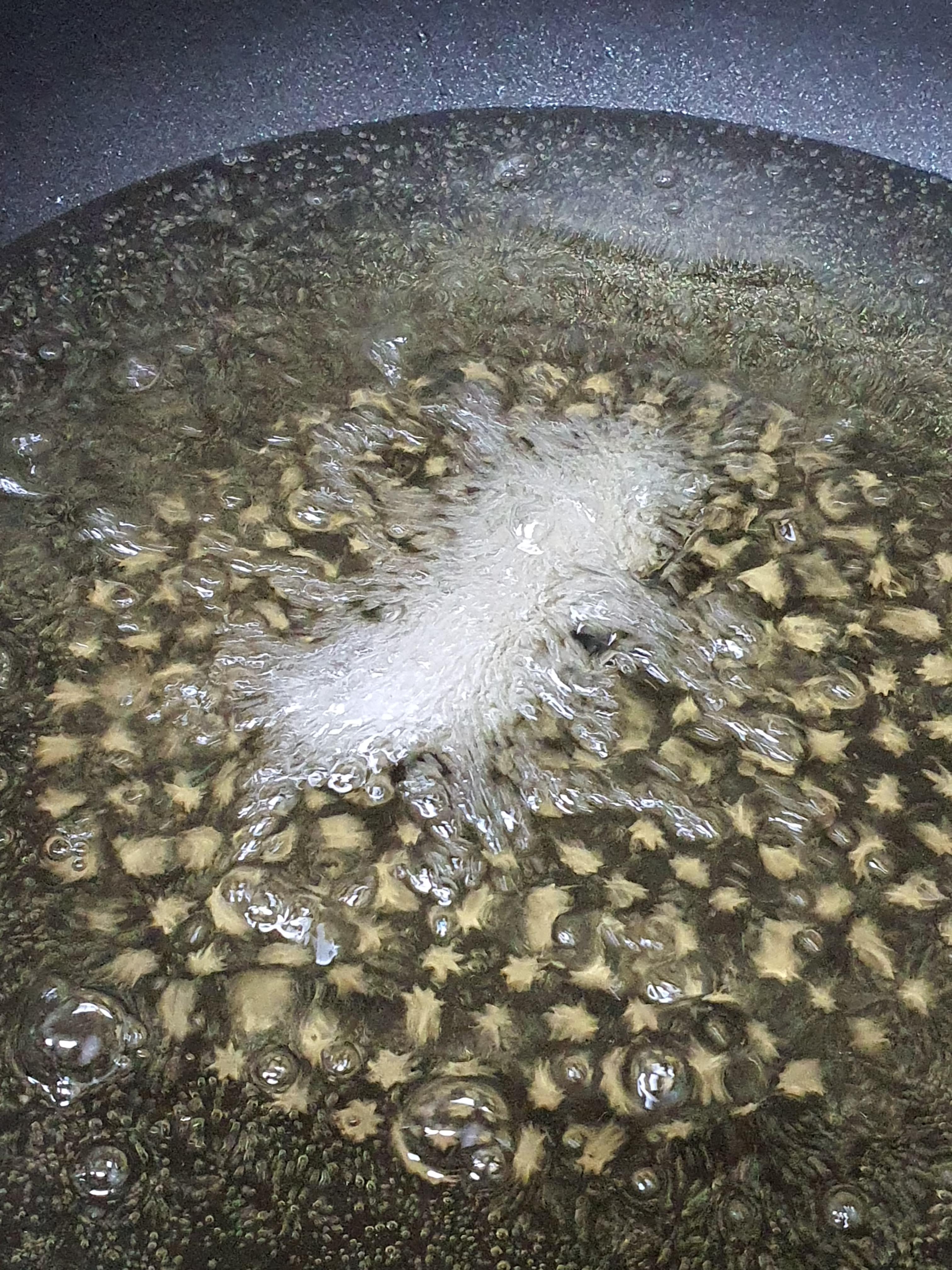 신랑말은 중국집은 확력이 있어 넣자마자 올라오는데.. 가정에서는 화력이 약해서 그렇게 빨리는 못 올라온다고 합니다.