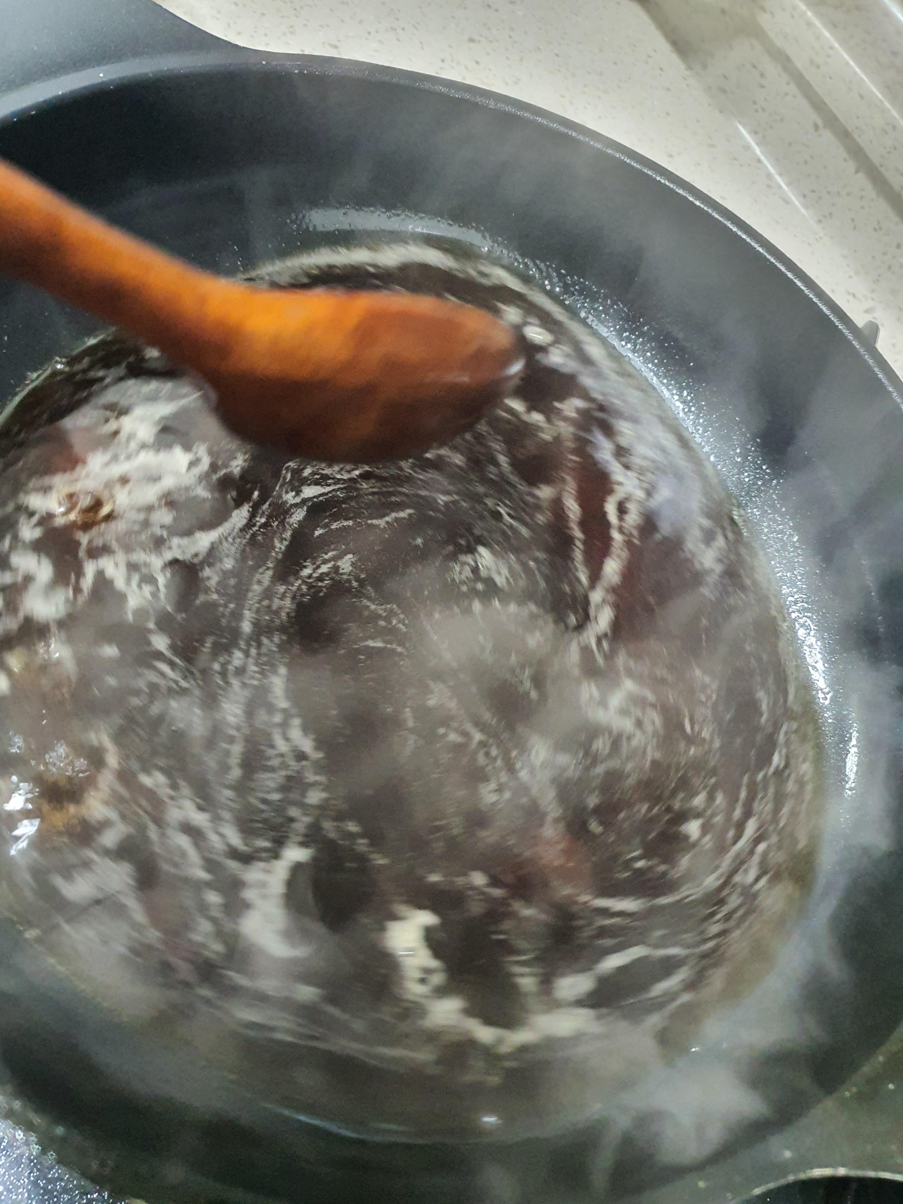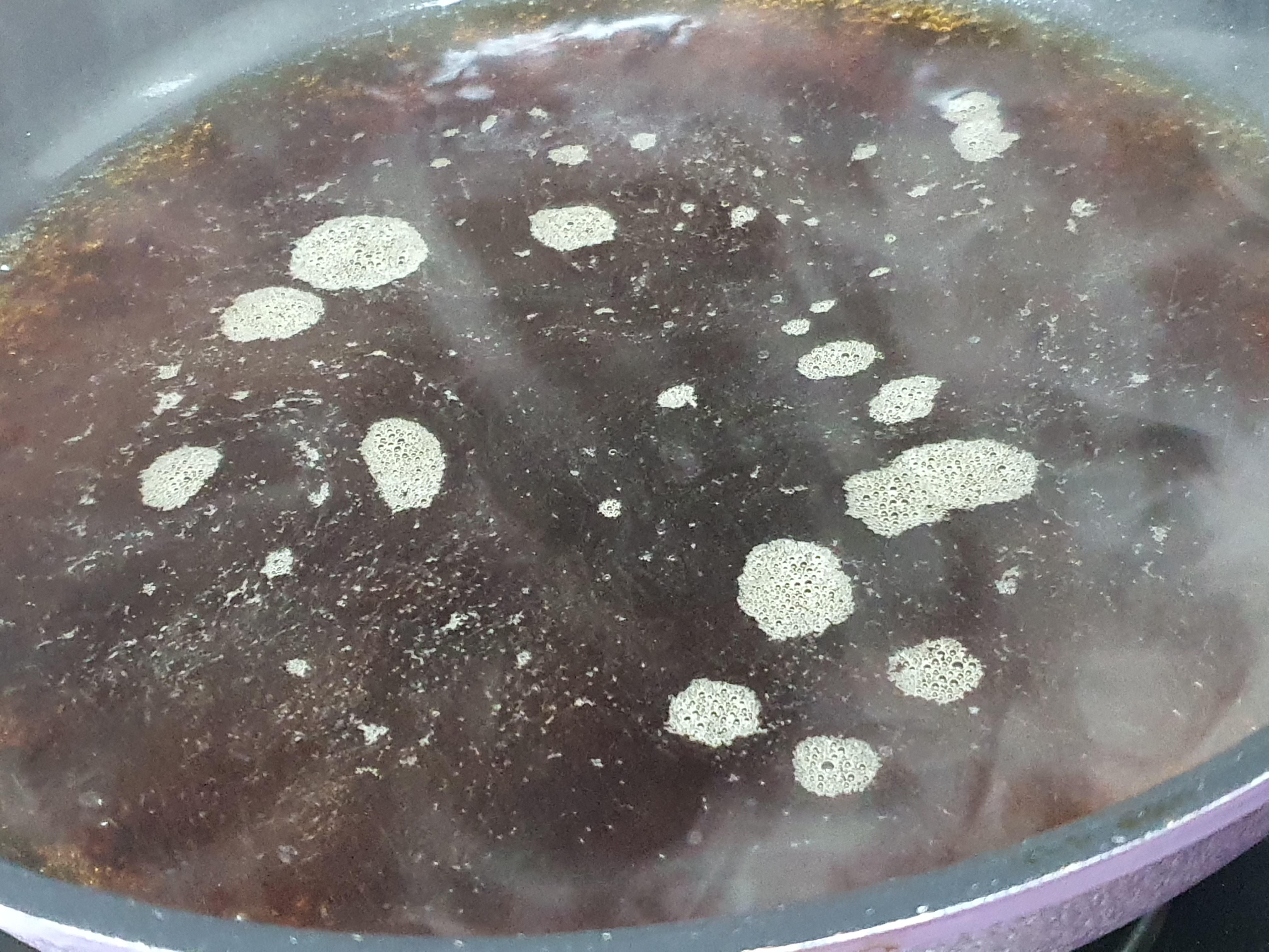 소스가 식으면 더 걸쭉해져서 끓을 때는 어느정도만 되직해지면 됩니다.