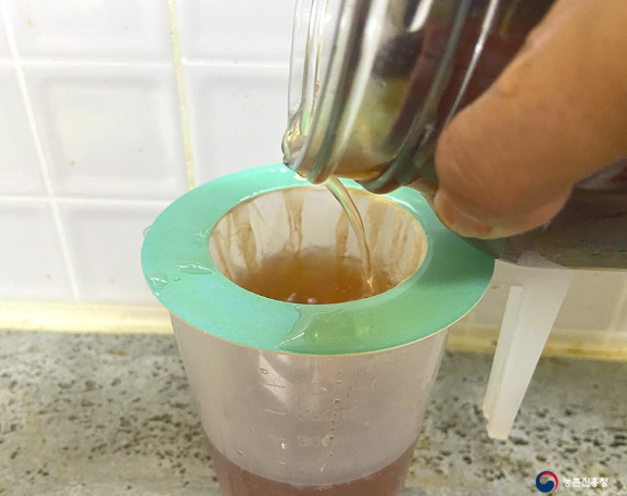 3. 그대로 써도 되지만 모기를 쫓는 효과를 유지하면서도 피부 자극을 최소화하기 위해 3:7 비율로 정제수 1.4L를 넣고 희석해 줍니다.