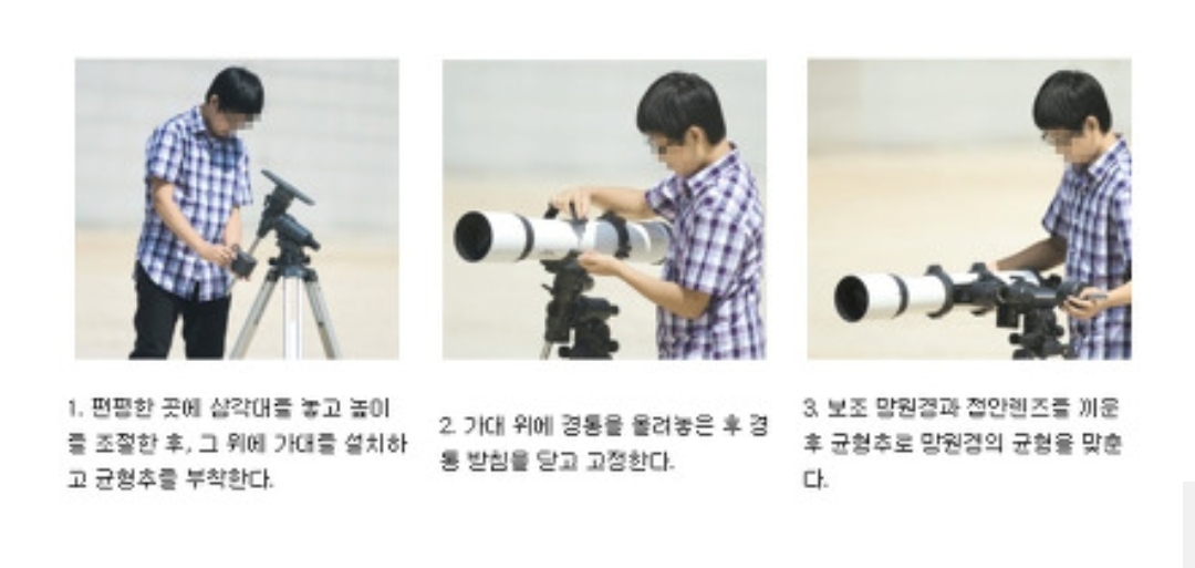 3. 접안렌즈를 통해 천체를 보면서 상이 선명하게 보이도록 초점을 맞춘다.