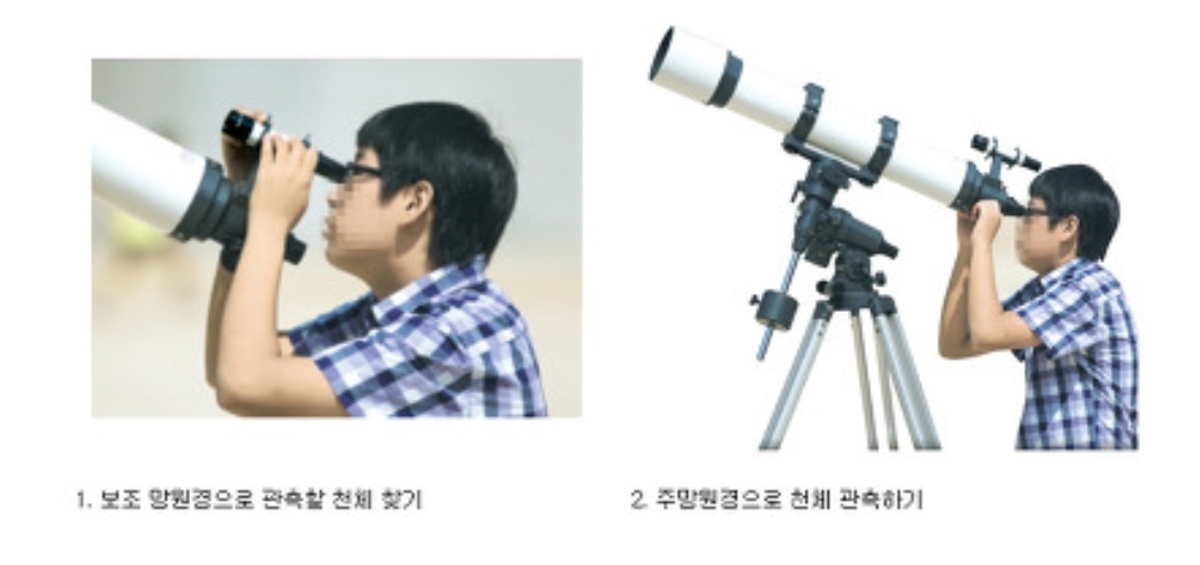 2. 보조 망원경의 시야에 보이는 십자선 중앙에 관측하고자 하는 천체가 오도록 망원경을 조절한다.