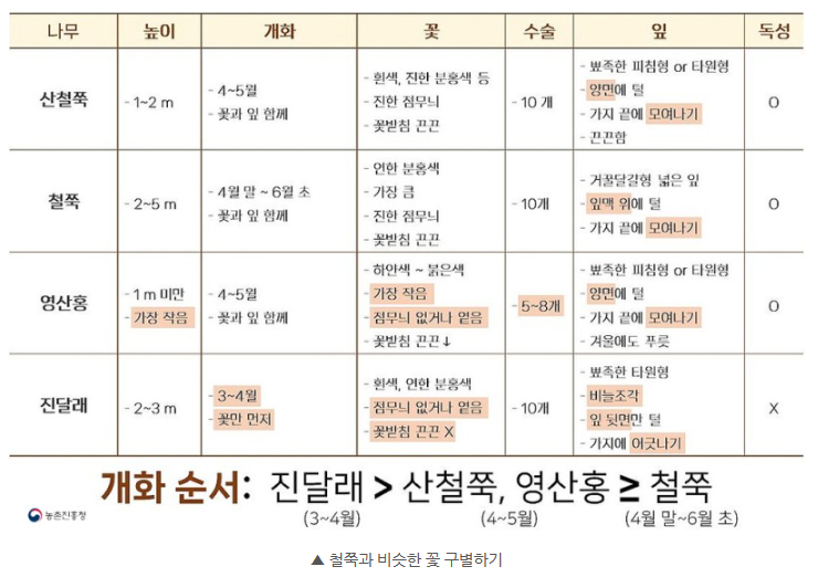 철쭉과 비슷한 꽃을 봤다면 순서대로 하나씩 관찰해 보면 쉽게 구별할 수 있습니다.