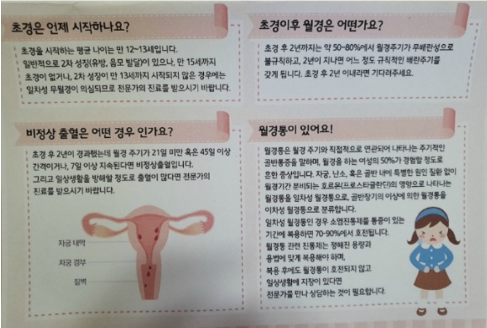 아래 자료는 딸이 병원에서 검진받을 때 받은 자료입니다. 도움이 되실 것 같아 함께 올려봅니다.