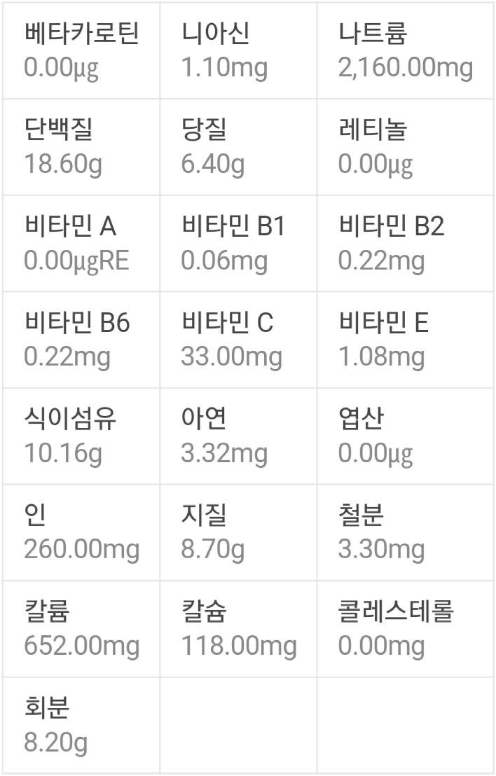 청국장 100g당 영양성분