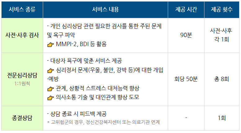 👉 지원내용 : 국민행복카드를 통한 전문심리상담 서비스 비용 지원