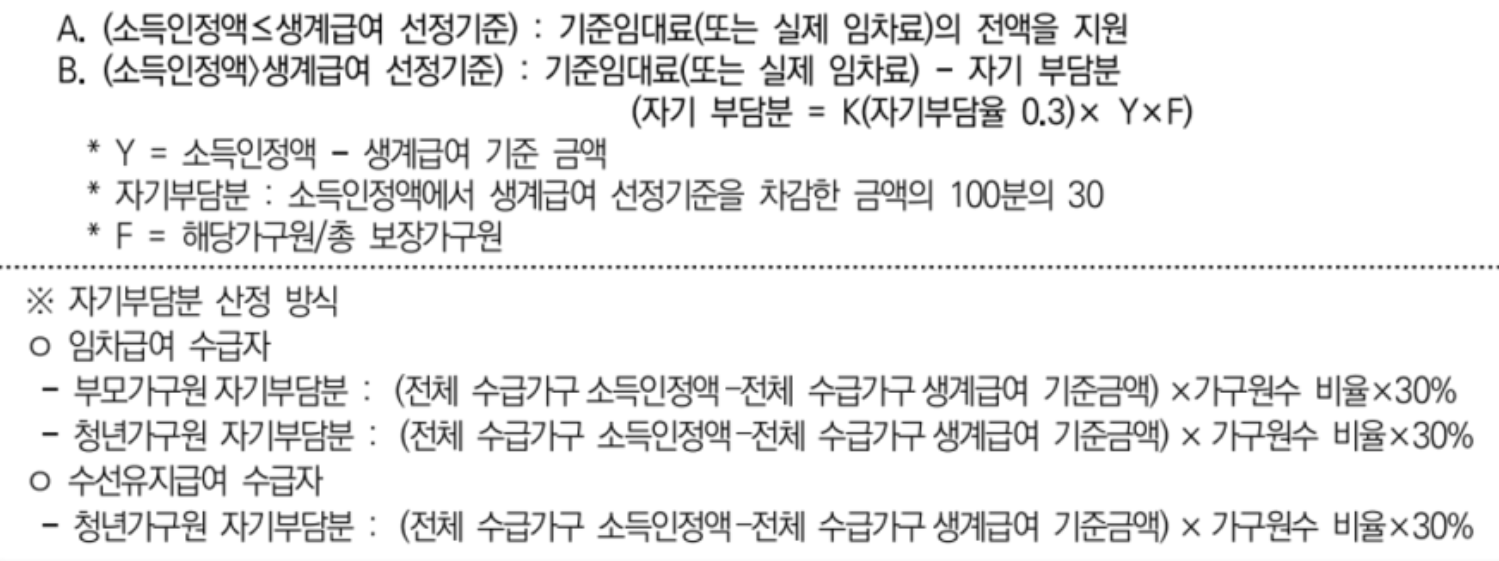 👉 기준임대료(또는 실제 임차료)에서 '자기부담분'을 제외한 금액을 지급합니다.