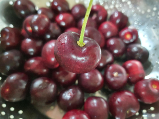 체리는 비타민C와 섬유질이 풍부할 뿐 아니라 칼륨이 하루 권장량의 9%에 달하고 270g이나 들어 있어 세포의 노화 손상을 막고 체리의 검붉은 색은 안토시아닌이 함유되어 있어 항산화 효고가 크다고 합니다.