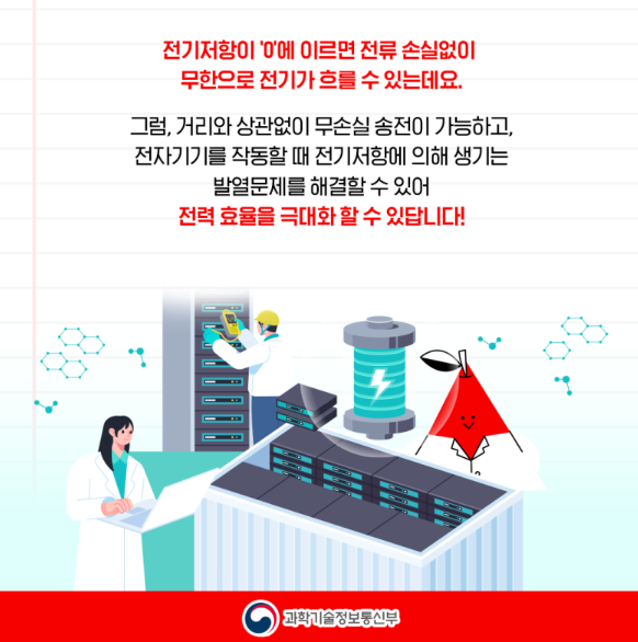 그럼, 거리와 상관없이 무손실 송전이 가능하고, 전자기기를 작동할 때 전기저항에 의해 생기는 발열문제를 해결할 수 있어 전력 효율을 극대화할 수 있다고 합니다.