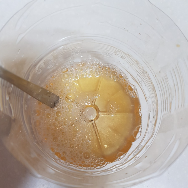 페트병을 반으로 잘라 준비한 재료를 1:1:1의 비율로 넣고 섞어줍니다. 노랑초파리의 경우 1km 밖에서도 식초의 과일 냄새를 맡을 수 있기 때문에 많을 필요는 없다고 합니다.