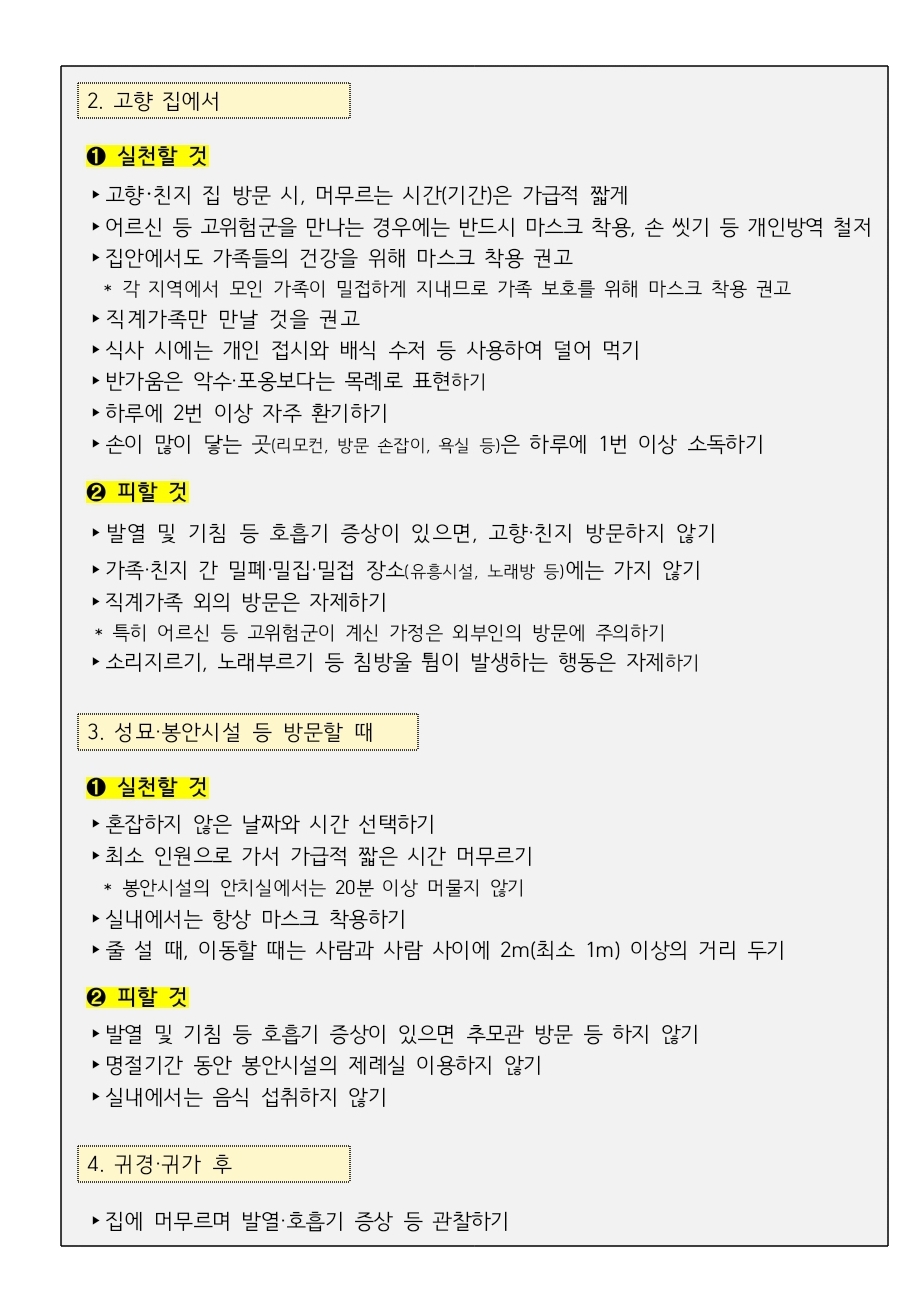 추석특별방역 : 사회적 거리두기 2단계의 핵심 조치를 그대로 이어가기