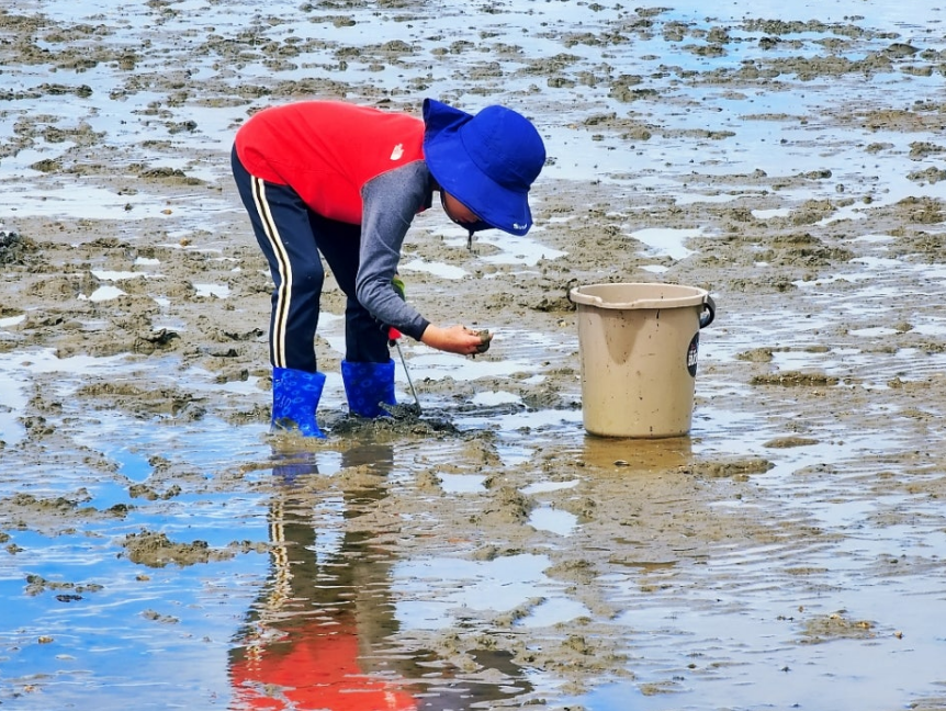 무창포 해수욕장이 가족 옇애지로 인기 있는 이유 중 하나가 해수욕도 가능하지만 무엇보다 갯벌체험으로 조개잡이를 할 수 있기 때문입니다.