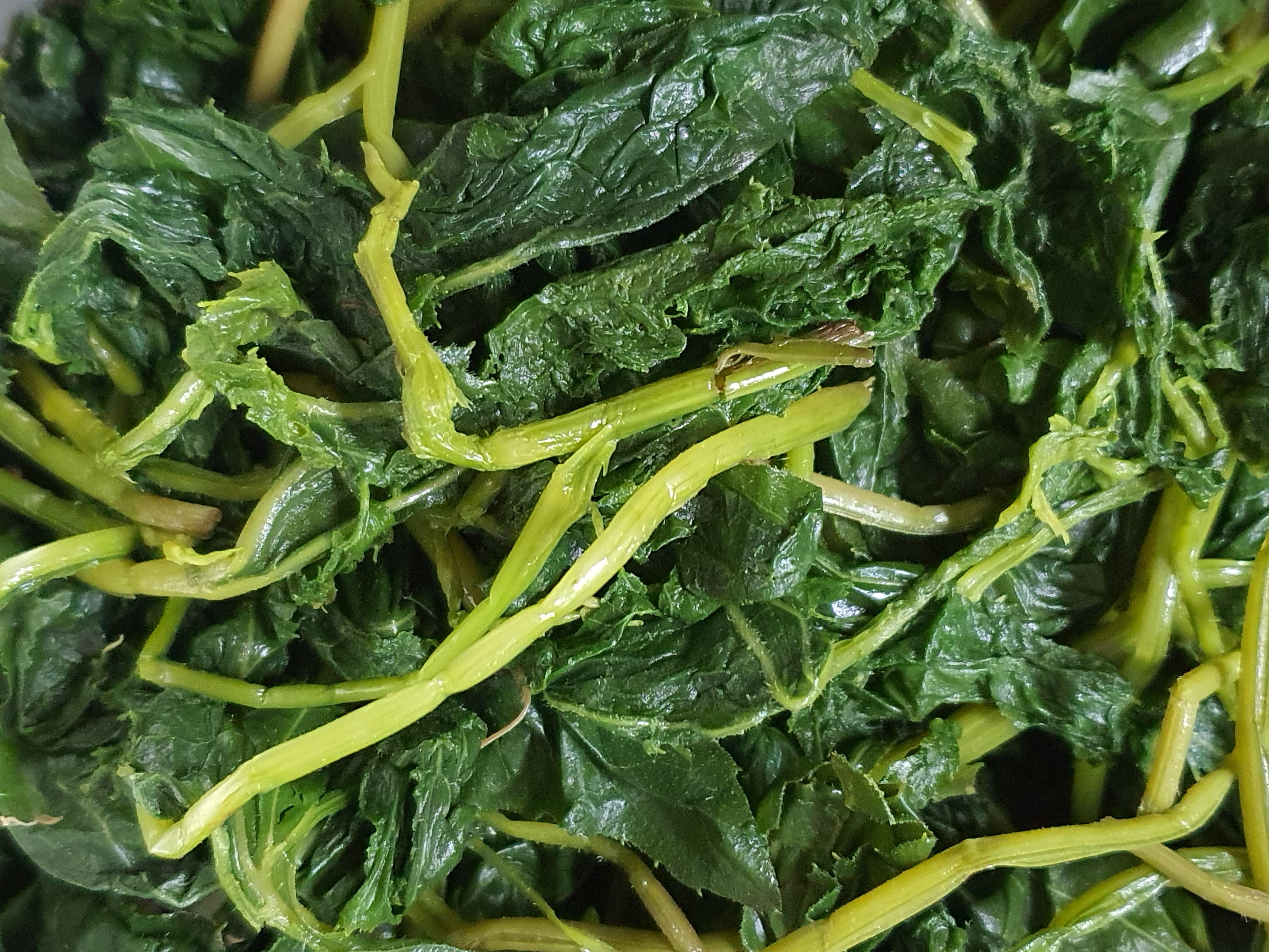 그 후 불을 끄고 삶은 물에 2시간 정도 그대로 담가두었다가 취 잎이 퍼지고 줄기도 부들부들해지면 건져서 물기를 꼭 짜고 조리하면 된다고 합니다.