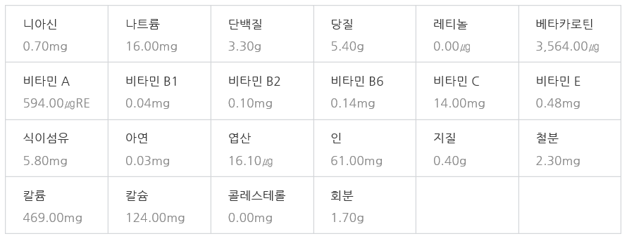 비타민A는 동량의 배추보다 10배를 더 함유하고 있다고 합니다.