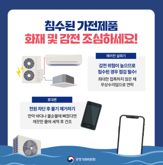 침수된 가전제품 화재 및 감전 주의!