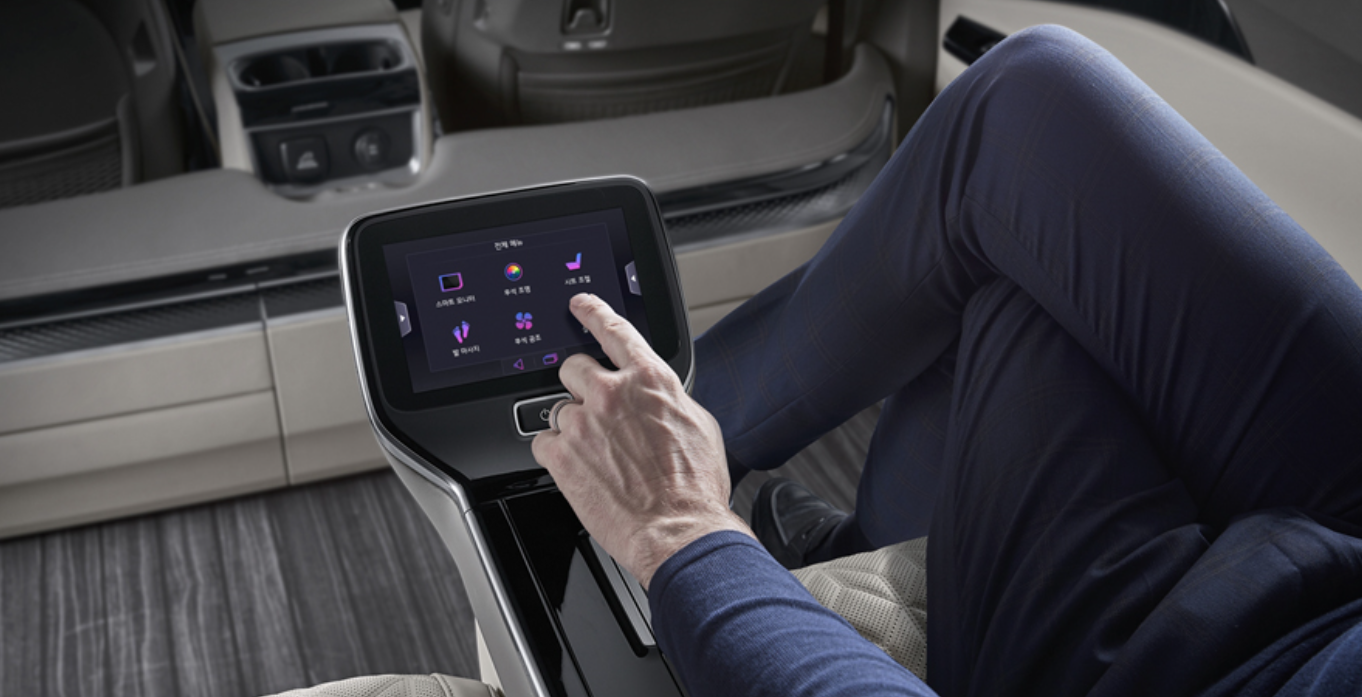 시트 외에도 후석 조명 및 공조, 21.5인치 스마트 모니터, 2역 좌측 전면부 하단에 위치한 발 마사지기 등을 통합 컨트롤러에서 간편하게 제어할 수 있다고 합니다.