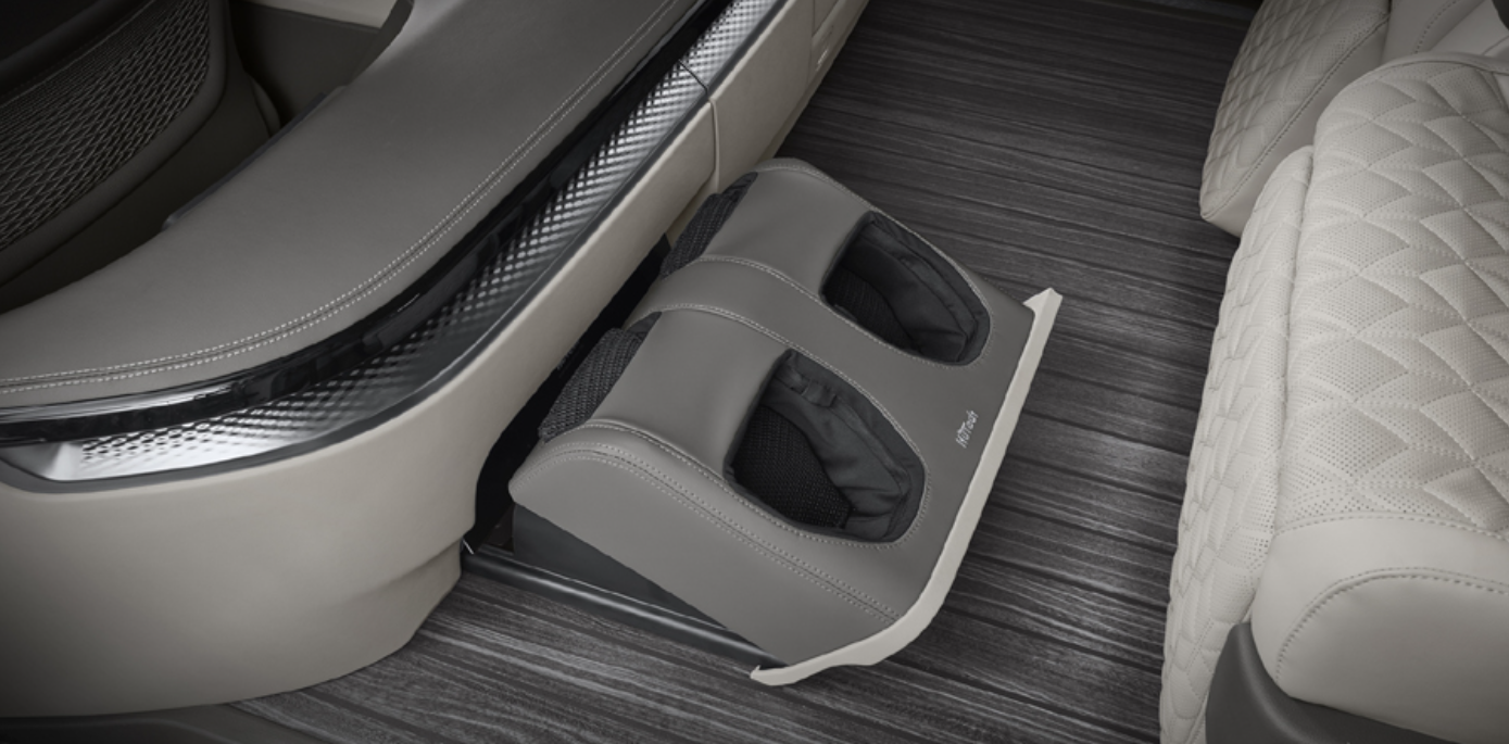 기아 최초로 4인승 모델에 적용된 발 마사지기는 헬스케어 전문 기업 '휴테크'와 협업해 개발한 것으로, 후석 리무진시트와 함께 장거리 이용에 지친 탐승객에 편안한 휴식경험을 선사한다고 합니다.