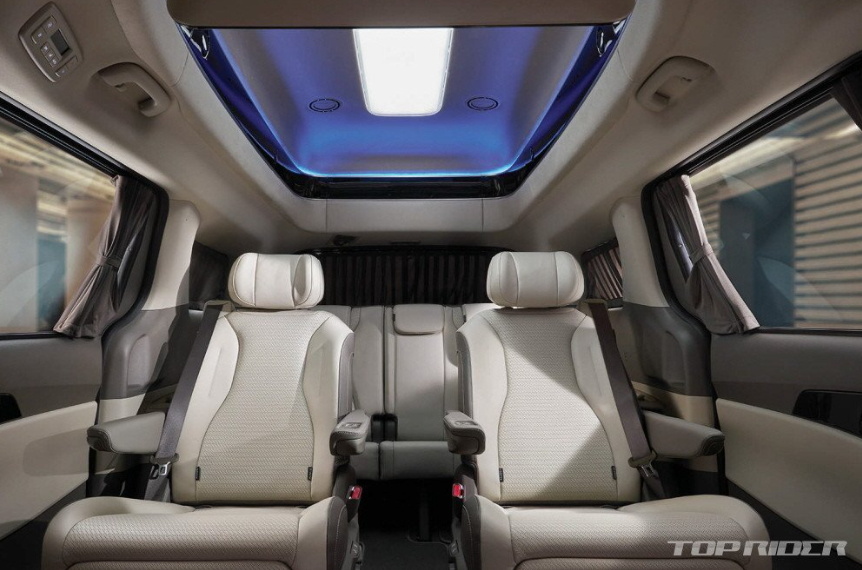 후석 측면과 후면에는 '주름식 커튼'이 탑재됐다고 합니다. 신형 카니발 하이리무진 4인승 2열 시트는 타격/진동 마사지가 포함된 '다이내믹 보디 케어'를 지원한다고 합니다. 시트는 나파 가죽에 퀼팅 스티치로 고급감을 높였습니다. 냉/온장고, 발 마시지기가 기본입니다. 풀패키지는 1억 360만원이라고 합니다.