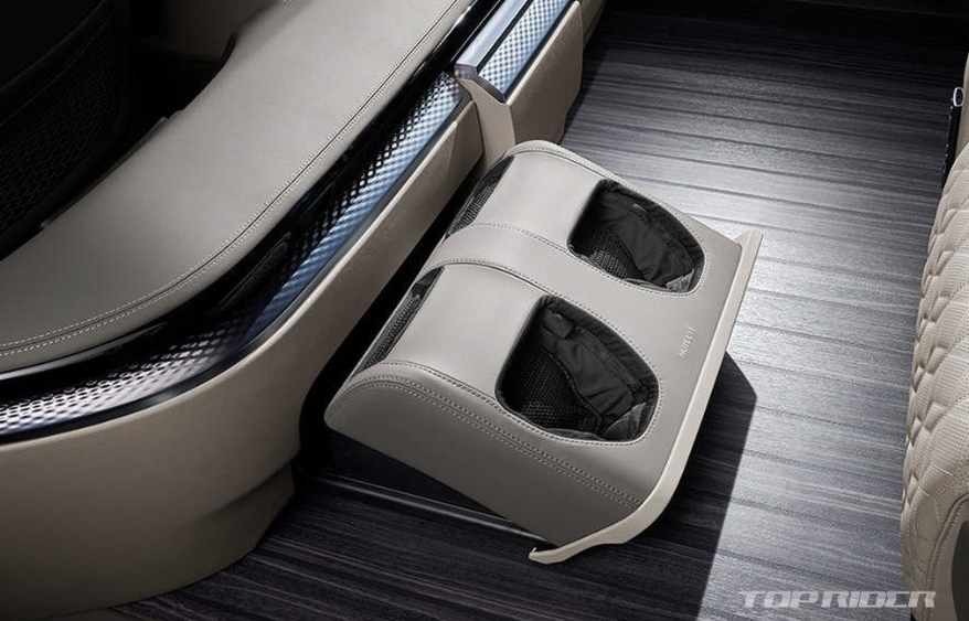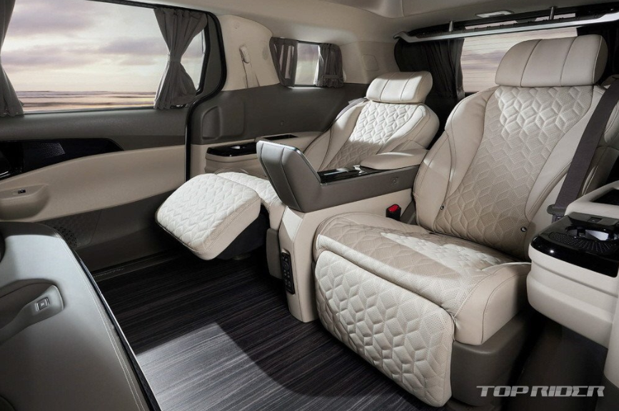 후석 측면과 후면에는 '주름식 커튼'이 탑재됐다고 합니다. 신형 카니발 하이리무진 4인승 2열 시트는 타격/진동 마사지가 포함된 '다이내믹 보디 케어'를 지원한다고 합니다. 시트는 나파 가죽에 퀼팅 스티치로 고급감을 높였습니다. 냉/온장고, 발 마시지기가 기본입니다. 풀패키지는 1억 360만원이라고 합니다.
