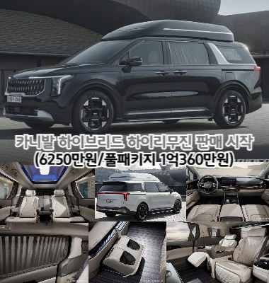 오늘은 카니발 하이브리드 하이리무진 판매 시작(6250만원/풀패키지 1억360만원) 소식을 전해드리겠습니다.