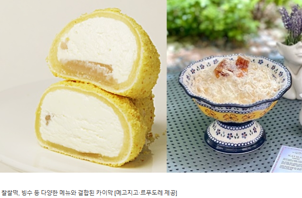 실제로 국내에서 카이막 디저트는 점점 다양해지고 있다고 합니다. 크림 형태이기에 각종 베이커리 및 디저트에 폭넓게 활용할 수 있다고 합니다. 우리나라 전통 식재료와도 결합됩니다. 찹쌀떡 안에 넣은 제품, 막거리에 섞어 짜 먹게 만든 디저트식 제품들이 출시되기도 했습니다.