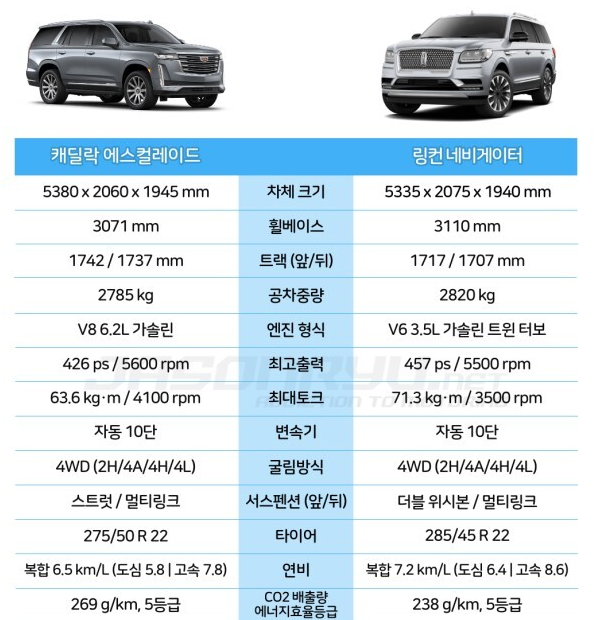 캐딜락 '에스컬레이드' VS 링컨 '네비게이터'