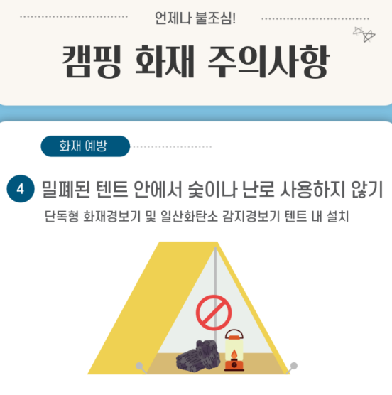 4. 밀폐된 텐트 안에서 숯이나 난로 사용을 금지해 주세요!
