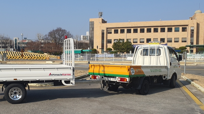 1. 차량 연결 장비에 윤활제(그리스)를 바른 후 피견인차 연결
