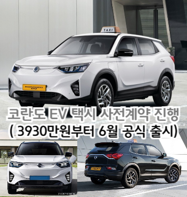 그럼 여기까지 코란도 EV 택시 사전계약 진행( 3930만원부터 6월 공식 출시) 소식을 전해드렸습니다.