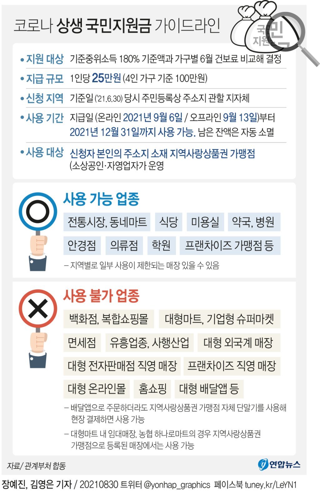 코로나 상생 국민지원금 9월 6일부터 지급(1인당 25만원, 연말까지 사용가능)